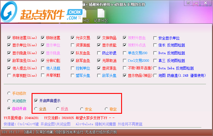 6、支持開啟和關(guān)閉聲音,在自動(dòng)運(yùn)行欄,分為全選、反選、安全和穩(wěn)定。
