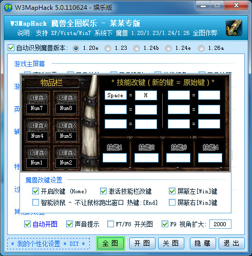 1. 魔獸爭霸1.20E完整全圖功能2. 物品欄改鍵, 支持多鍵組合