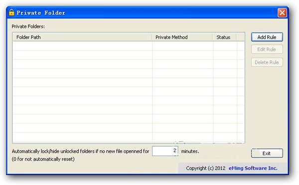 隱藏和鎖定文件夾(Private Folder)是一個windows下的免費工具,主要是用來隱藏和鎖定文件夾,從而阻止他人未經(jīng)允許私自訪問,避免隱私被泄露。如果文件夾中沒有文件被運行的話,過段時間文件夾還會自動隱藏/鎖定,十分人性化。