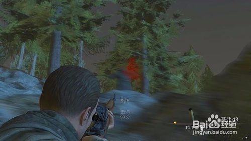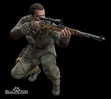 繼續(xù)往山頂埋伏點(diǎn)前進(jìn),埋伏點(diǎn)有一名狙擊手,輕松擊殺。