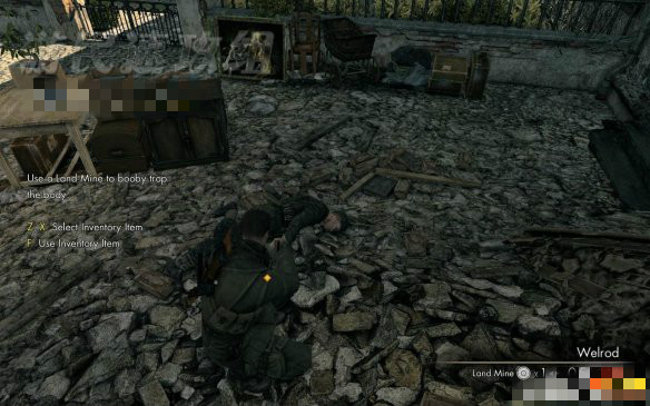 按ZX換成地雷,在納粹尸體前面放一個(gè),然后去指定的地點(diǎn),會(huì)觸發(fā)一段動(dòng)畫