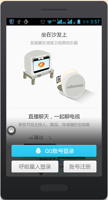 注冊(cè)使用從本站下載呼啦,然后打開(kāi)安裝好的“湖南衛(wèi)視呼啦”,如果你已有qq帳號(hào),可以直接點(diǎn)擊“qq帳號(hào)登錄”。