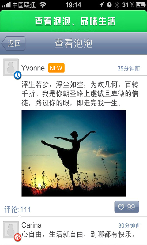 1、按距離找到你身邊的最愛,第一時間響應(yīng)他(她)。2、增強現(xiàn)實,發(fā)布的泡泡漂浮在現(xiàn)實的天空中。