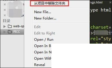 如果我們需要?jiǎng)h除這個(gè)站點(diǎn),就右擊站點(diǎn)名稱(chēng),然后在彈出的列表中選擇“從項(xiàng)目中移除文件夾”即可。