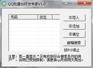QQ批量加好友專家是一款qq批量加好友軟件,可以批量導(dǎo)入,批量添加QQ好友,加QQ好友利器,更換QQ號(hào)碼或QQ被盜qQQ好友就沒(méi)了,所以用“導(dǎo)出QQ好友工具”把QQ好友做個(gè)備份,然后再用本軟件批量添加,這樣QQ好友又回來(lái)了,從此不怕QQ好友丟失了!