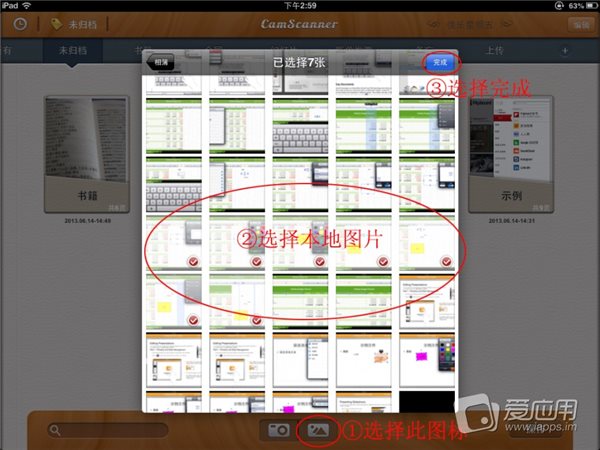 想把拍攝在設(shè)備中的的照片保存到一份 PDF 文檔中?小編當(dāng)初就是沖這個目的戳的“掃描全能王”。打開應(yīng)用,選擇相機(jī)圖標(biāo)旁邊的圖片按鈕,選擇本地或照片流里的,選擇具體的照片,點(diǎn)擊右上方的完成,生成新文檔。