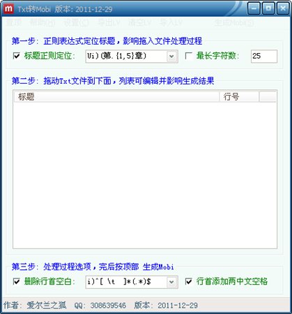 將文本文件拖動(dòng)到列表框(窗口中最大的那個(gè)框)中, 按 頂部右邊的 生成Mobi 菜單,然后就會(huì)生成mobi文件(有沒(méi)有目錄得看你的Txt的標(biāo)題是不是 第xxx 章 這樣的類型)