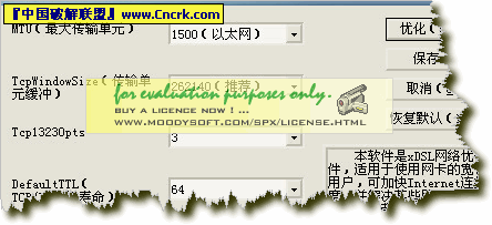本軟件是xDSL網(wǎng)絡(luò)優(yōu)化軟件,僅適用于使用網(wǎng)卡的寬帶網(wǎng)絡(luò)用戶,可加快Internet連接速度,并解決某些網(wǎng)頁無法訪問及不能發(fā)送帶附件的郵件等問題,一鍵即可完成全部優(yōu)化!(建議使用步驟:恢復(fù)默認(rèn)->重啟->優(yōu)化->保存->重啟)