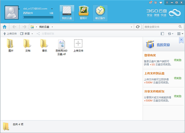無限免費空間,大容量,圖片、文檔、音樂輕松存。