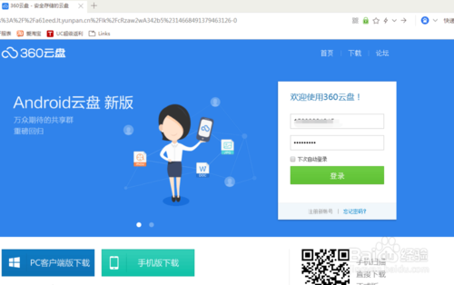 也可以在360云盤首頁注冊賬戶,直接使用。