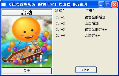《狂歡百貨店3:購物天堂》+4 修改器是狂歡百貨店3修改器輔助工具。狂歡百貨店3修改器功能:ctrl+1 銷售金額增加 ctrl+2 連擊增加 ctrl+3 銷售金額BT++ ctrl+4 連擊BT++