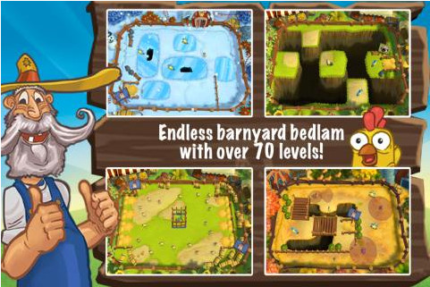游戲的基本目標(biāo)就是把小雞、小羊、小牛趕回它們的窩,在回窩的路上,有三顆星星,吃到這三顆星星才算完美過關(guān)。游戲的難度隨著關(guān)卡的提升而增加,在上手后大家會發(fā)現(xiàn),這款可愛搞笑風(fēng)格的游戲真的很難。玩家驅(qū)趕家畜回窩的方法比較特殊,需要在它們屁股后面,向你想要去的方向滑動。