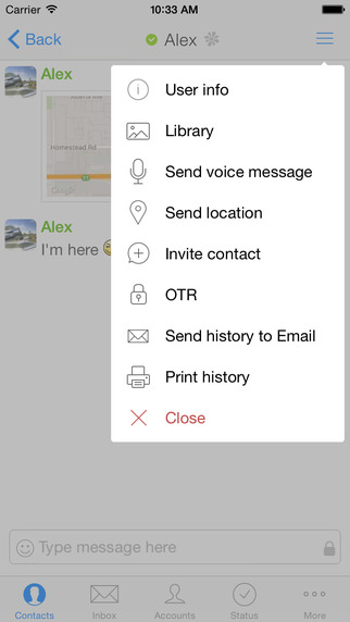 群聊功能邀請(qǐng)您的好友來使用群聊功能吧,支持Skype,MSN,AIM,和ICQ。Skype來電會(huì)被自動(dòng)記錄并以語音消息的形式即時(shí)回放出來。