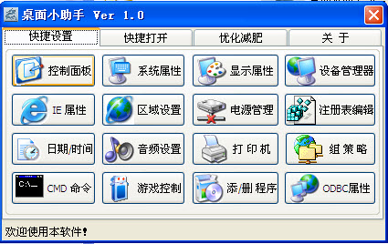 桌面小助手是一款非常方便的桌面工具,程序小功能大,包含了快捷設(shè)置,快捷打開,優(yōu)化減肥等類別。