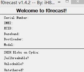 iOS設(shè)備信息查看(f0recast) 1.4.2 免費(fèi)版 f0recast是個(gè)實(shí)用的iOS設(shè)備信息查看軟件,專用來查看iPhone, iPad或iPod的設(shè)備信息。包括:序列號(hào)、IMEI或ECID。該蘋果設(shè)備信息查看軟件也能讓你知道你的iOS設(shè)備是否可以越獄