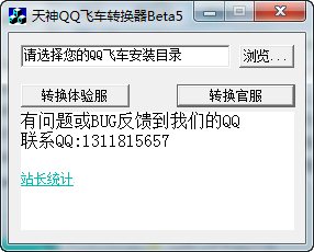 天神qq飛車體驗服轉(zhuǎn)換器 Beta5綠色官方版 QQ飛車體驗服是騰訊推出的游戲測試服,在體驗服中,新號玩家會送一萬點卷,故很多玩家都想上體驗服,這時候你就需要用到這個QQ飛車體驗服轉(zhuǎn)換器了。天神游戲軟件工作室這里提供的QQ飛車體驗服轉(zhuǎn)換器下載,軟件包中含兩個版本的qq飛車體驗服轉(zhuǎn)換器,有需要的朋友不要錯過??!