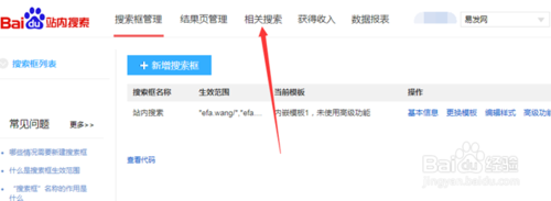4、進入后臺管理后,點擊頂部導(dǎo)航欄【相關(guān)搜索】,如下圖所示: