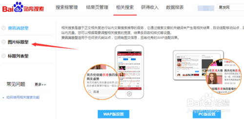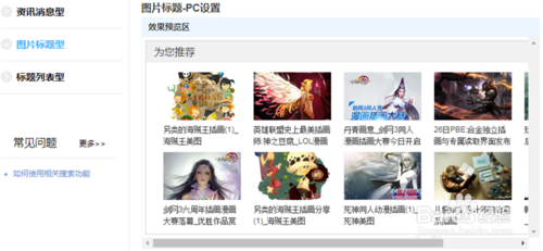 5、首選在左側(cè)導(dǎo)航欄選擇要展現(xiàn)的樣式,小蔣選擇了【圖片標(biāo)題型】,然后在右邊選擇PC端或者手機端設(shè)置,以PC端為例:
