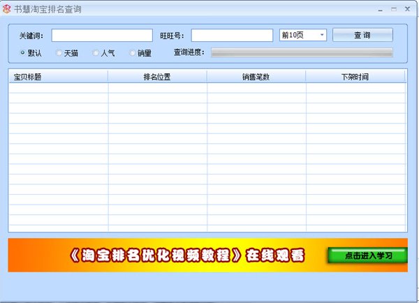 書慧淘寶關(guān)鍵詞排名查詢軟件,包含了淘寶默認(rèn)排名查詢,人氣排名查詢,天貓排名查詢,銷量排名查詢等功能。