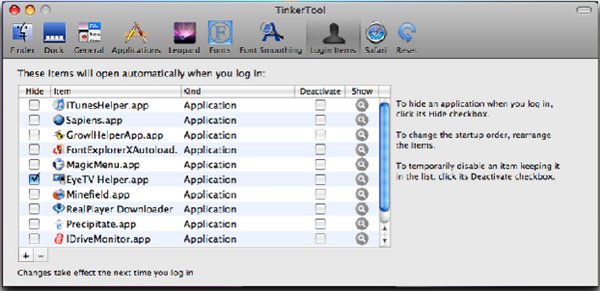 TinkerTool是一個(gè)MAC系統(tǒng)設(shè)置軟件,能夠讓你安全快速的修改系統(tǒng)的默認(rèn)配置,包括Finder、 Dock、通用、桌面、應(yīng)用程序、字體、文字平滑、登錄項(xiàng)、iTunes等等。TinkerTool讓您獲得更多的設(shè)定,使得蘋果已經(jīng)在Mac OS X的激活隱藏的功能,操作系統(tǒng)和一些應(yīng)用交付系統(tǒng)。該工具可以確保偏好變化不僅影響到當(dāng)前用戶。它絕不會(huì)改變的任何組成部分的操作系統(tǒng),所以完整的系統(tǒng)不處于危險(xiǎn)之中,而且將不會(huì)有負(fù)面影響制度。