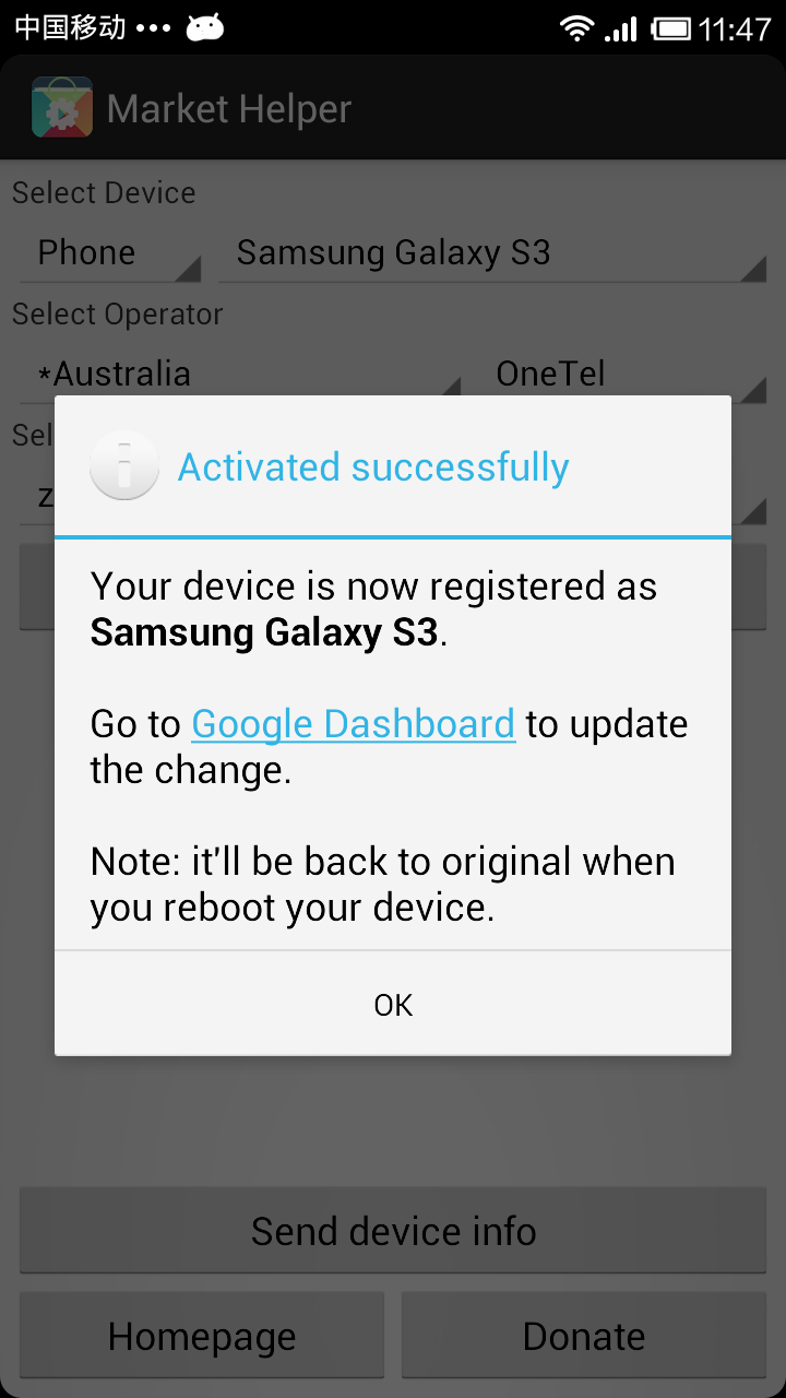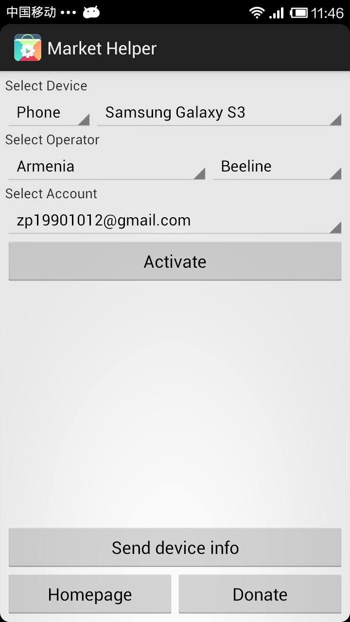 谷歌電子市場助手是一款可以幫你更改手機運營商以及修改機型型號配置文件build.prop的軟件,它操作起來更加簡便,并且可以隨時換回設(shè)備的原有配置,避免出現(xiàn)一些不必要的問題。目前這款應(yīng)用僅支持將設(shè)備模擬成GalaxyS3,kindleFireHD,AmazonKindle以及Nexus7四款設(shè)備(更多的設(shè)備會在后期陸續(xù)添加),后三者均為平板設(shè)備。
