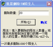 填入要?jiǎng)h除的陌生人數(shù)量,將鼠標(biāo)光標(biāo)移到TM主窗口的第一個(gè)陌生人的位置,再按熱鍵CTRL-ALT-D。一次最多刪除1000個(gè)陌生人。