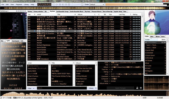 默認(rèn)皮膚我們可以自己美化,CUI配置皮膚我們都是選用那些大神的作品,比如(Tech、Ekio、dreamix、shutter、mnlt、summmer hit、slate等優(yōu)秀作品以及他們的修改版),這些通常以懶人包或者配置文件的形式為廣大foobar用戶所用。