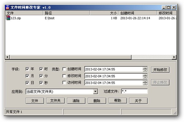 文件時(shí)間修改專家是一個(gè)批量修改文件和文件夾時(shí)間的綠色工具,可修改文件創(chuàng)建時(shí)間、修改時(shí)間和訪問(wèn)時(shí)間,并且可以對(duì)某個(gè)字段進(jìn)行修改。
