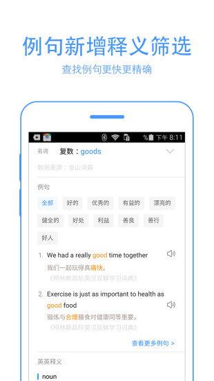 例句新增釋義篩選,查找例句更快更準(zhǔn)確;