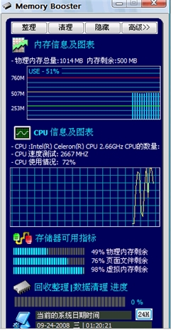 內(nèi)存整理:可了解內(nèi)存及CPU的使用情況,及時(shí)整理內(nèi)存,調(diào)整物理內(nèi)存的使用性能。