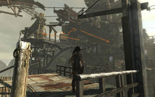 由于道路被強風吹毀我們不得不另行途徑到達對面. 來到橋的右方我們可以發(fā)射繩索到對面的巖壁搭建繩橋,