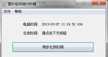 2. 為了將誤差控制到最小,本軟件從用戶按下按鈕開始到時間數(shù)據(jù)從服務(wù)器返回,這中間的網(wǎng)絡(luò)傳輸是需要時間的, 根據(jù)網(wǎng)絡(luò)情況,1到10秒鐘不等,這段時間也會修正。