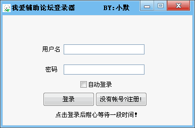 小默制作的我愛輔助論壇登錄器工具,方便我愛輔助論壇網(wǎng)友使用。 功能介紹: 1.可以登錄,用于掛機(jī)! 2.可以注冊(cè),不過不要刷哦!