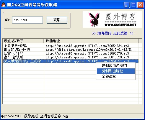 很多時(shí)候訪問(wèn)打開(kāi)一個(gè)好友的qq空間,感覺(jué)她的空間背景音樂(lè)真的太好聽(tīng)了,然后就特別想把他的背景音樂(lè)設(shè)置成自己qq空間的背景音樂(lè);但是,在qq空間添加背景音樂(lè)是需要音樂(lè)文件的url鏈接的(往往很多歌曲鏈接都不好找,而且質(zhì)量不高),這時(shí)候就不知道怎樣才可以把他背景音樂(lè)的url地址弄過(guò)來(lái)。現(xiàn)在這都不是問(wèn)題了,因?yàn)槿ν鈗q空間音樂(lè)獲取器已經(jīng)完美解決了這一問(wèn)題。