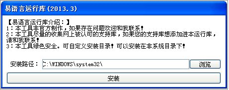 易語(yǔ)言運(yùn)行庫(kù) 2013.3 最新免費(fèi)版 易語(yǔ)言是一門(mén)計(jì)算機(jī)程序語(yǔ)言。以“易”著稱(chēng),以中文作為程序代碼表達(dá)的語(yǔ)言形式。易語(yǔ)言的創(chuàng)始人是吳濤。早期版本的名字為E語(yǔ)言。易語(yǔ)言運(yùn)行庫(kù)盡量收集網(wǎng)上被認(rèn)可的支持庫(kù),綠色安全 。可自定義安裝目錄!可以安裝在非系統(tǒng)目錄下 !