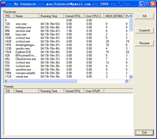 TopShow 還有倆功能,Kill(殺掉)進(jìn)程以及 Suspend(暫停)/ Resume(恢復(fù))進(jìn)程。