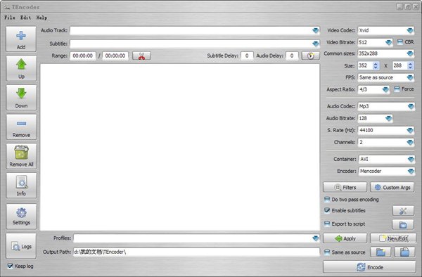 TEncoder是一個多線程的開源免費視頻編碼器,最大可同步運行8個編碼器。軟件使用Mencoder和FFMpeg。支持大多數(shù)常見視頻格式,并能將字幕合并到視頻中