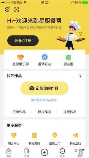 用戶登錄注冊;用戶可以加入星廚俱樂部,成為星廚餐幫一員。