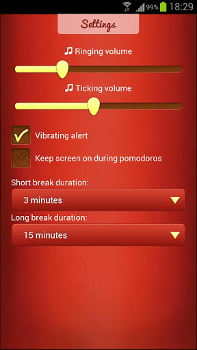 番茄工作法:生產(chǎn)力變得簡(jiǎn)單。只需輕點(diǎn)番茄啟動(dòng)定時(shí)器。 Pomodoro的完成時(shí),它會(huì)提醒你。它也自動(dòng)設(shè)置休息提醒。這里沒(méi)有任何倒數(shù)計(jì)時(shí),因?yàn)槟銘?yīng)該把重點(diǎn)放在你的任務(wù),而不是你的計(jì)時(shí)器,正確的嗎?在20世紀(jì)80年代,由Francesco奇里洛番茄工作法是最有效的時(shí)間管理。這很簡(jiǎn)單。您可以設(shè)置定時(shí)器,并專(zhuān)注于一個(gè)特定的任務(wù),直到定時(shí)器熄滅。這是一個(gè)“番茄工作法”。短暫的休息后,每一個(gè)番茄鐘。如果你失去了一個(gè)番茄鐘期間的重點(diǎn),它應(yīng)被視為失敗。