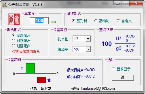 《公差與配合查詢》軟件不能保證沒有錯(cuò)誤,其給出的結(jié)果,要經(jīng)過驗(yàn)證后使用。