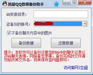 凱旋qq數(shù)據(jù)備份助手:可以一鍵備份還原QQ聊天記錄,QQ表情,備忘錄等數(shù)據(jù),注冊擴(kuò)展名.qq,只需雙擊.qq文件即可啟動本軟件還原您的QQ數(shù)據(jù)。