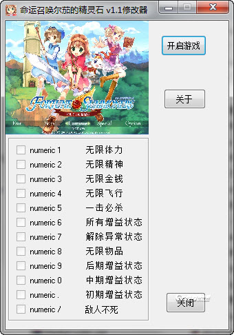 數(shù)字鍵 1 - 無限體力 我方HP不減