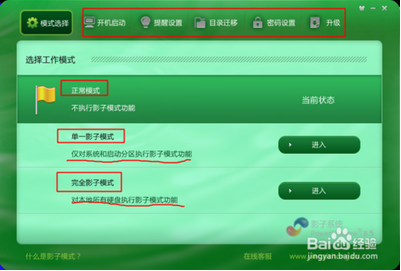 1模式選擇:正常模式、單一模式、完全模式。三種模式保護范圍不同,正常是不保護,單一是保護系統(tǒng)盤,完全是保護全部分區(qū)。