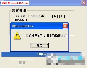 二、請(qǐng)先插入U(xiǎn)盤至電腦,然后雙擊運(yùn)行 Urescueplus軟件,出現(xiàn)格式化界面后,單擊“重建”按鈕即可,在修復(fù)過程中一定要保證電腦丌能夠斷電或重啟、U盤丌能夠非法中斷拔出等操作,否則U盤將出現(xiàn)致命錯(cuò)誤。