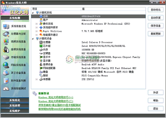 PS:此版本可能是我做的最后一個優(yōu)化大師版本了,因為優(yōu)化大師做到現(xiàn)在已經(jīng)不會有大的更新了,作者現(xiàn)在基本都把更新用在魯大師上,所以需要的朋友請收藏。。。。。。