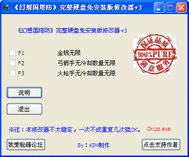 幻想國塔防三項修改,幻想國塔防是一款有趣的塔防游戲,這是一款為游戲制作的作弊器,一共三個選項,幫助菜鳥玩家通過難關。