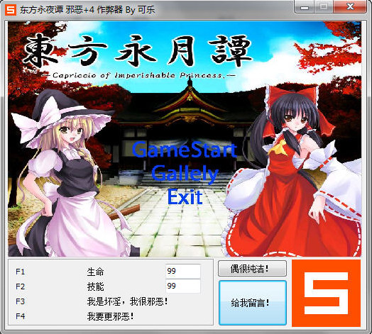 東方永月譚:邪惡是一款經(jīng)典的同人彈彈球游戲,該游戲是東方系列的一款,本修改器可以修改生命、技能等等多想作弊功能 功能介紹 F1 生命 F2 技能 F3 我是壞淫,我很邪惡 F4 我要更邪惡