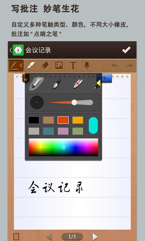 1.選擇不同筆觸,手寫文章、圈點(diǎn)批注;2.設(shè)置筆記標(biāo)題,選擇封面、紙張;