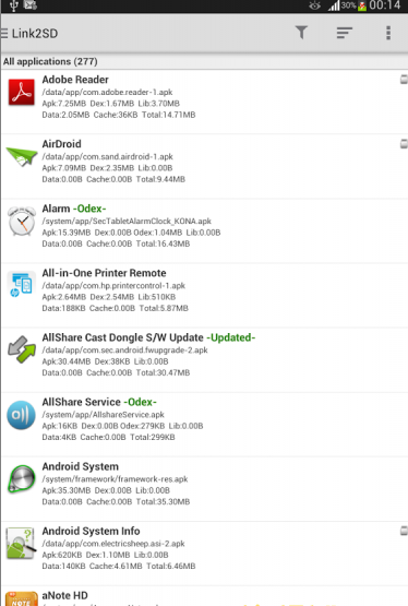 真正卸載Link2sd:首先 點(diǎn)擊 軟件頂部的 杯子 按鈕切換到 已連接,選擇所有APK ->操作 ->移除連接 ->將 apk dex lib都移回手機(jī)里,前提是手機(jī)空間足夠。