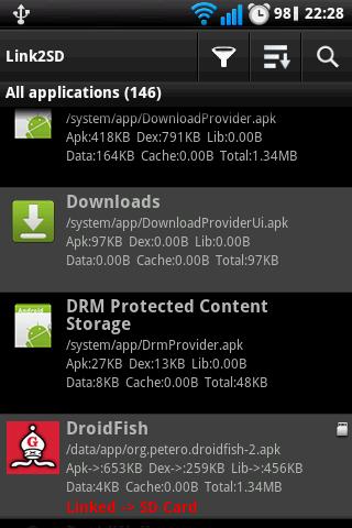 - 任何用戶應(yīng)用程序移動(dòng)到SD即使應(yīng)用程序不支持移動(dòng)到SD(又名“力招”,為Android 2.2及更高版本)